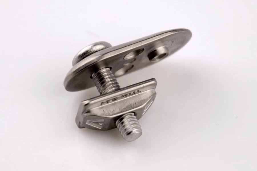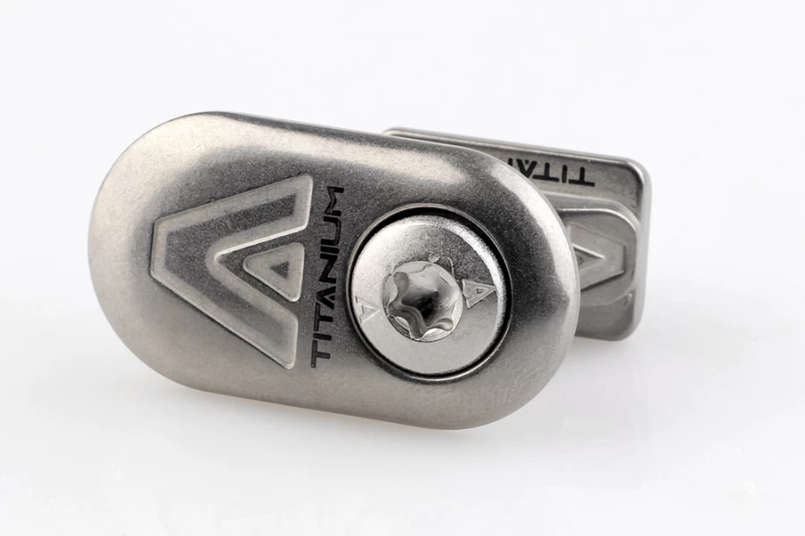 Satz mit 4 Titan-Nutsteinen, bidirektionalen Titanscheiben mit Torx-Schrauben aus Edelstahl 316L, erhältlich mit Linsenkopf- oder Senkkopfschrauben.