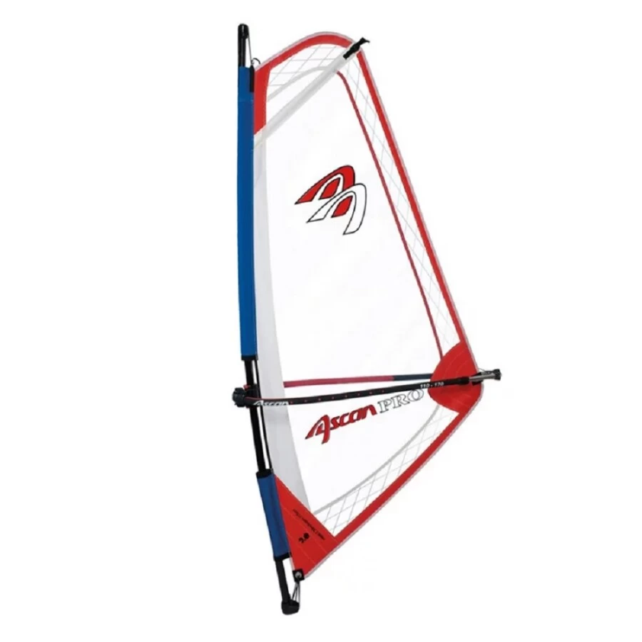 Ascans Pro Rigg ist ein hochwertiges Kinder-/ Jugendsegel und Damensegel (bis ca. 55 kg) aus verstärktem Monofilm mit einem stabileen Gabelbaum und einem zweiteiligem RDM-Epoxymast (ab 2,5 qm)