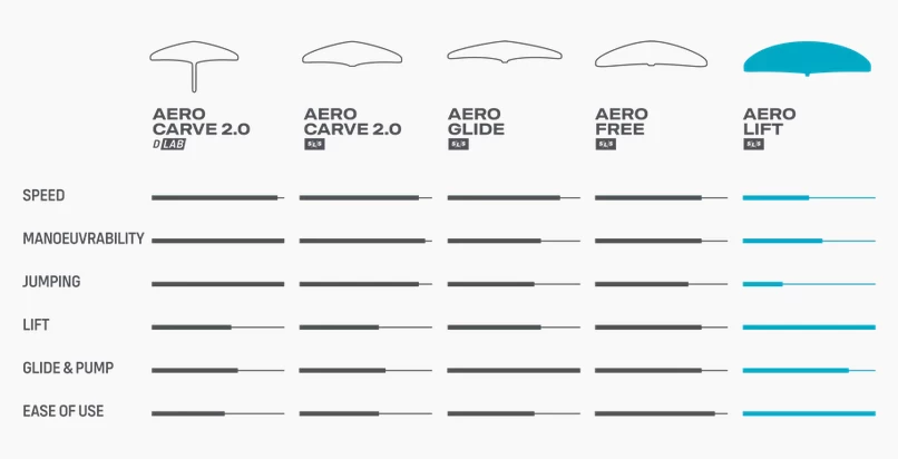 Unser empfohlenes Set für jeden Wing Foil Neuling! Unglaublich gleitstabil und einfach in der Nutzung ist dieses Aero Lift 2400 Set die beste Option für schnellen Lernerfolg für jeden Rider von 60 kg aufwärts bis zu schwergewichtigen Einsteigern. Mit der soliden und langlebigen Aero AL Mast und Fuselage Kombination kannst du später einfach auf kleinere Wings aufrüsten wenn du soweit bist.