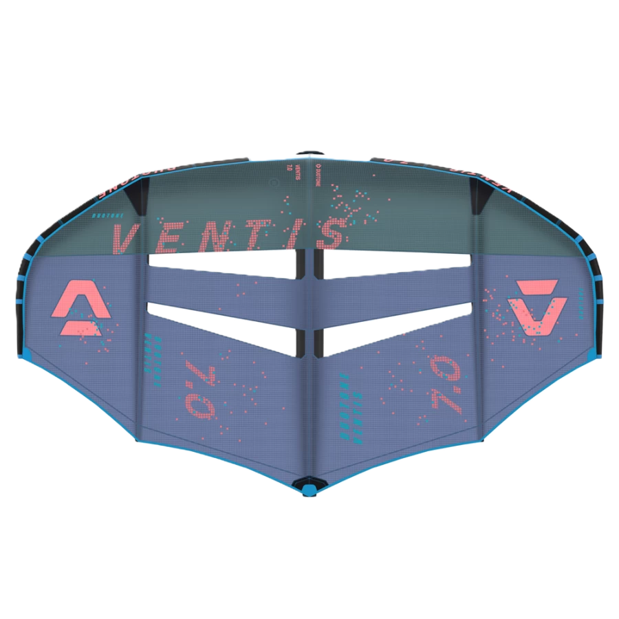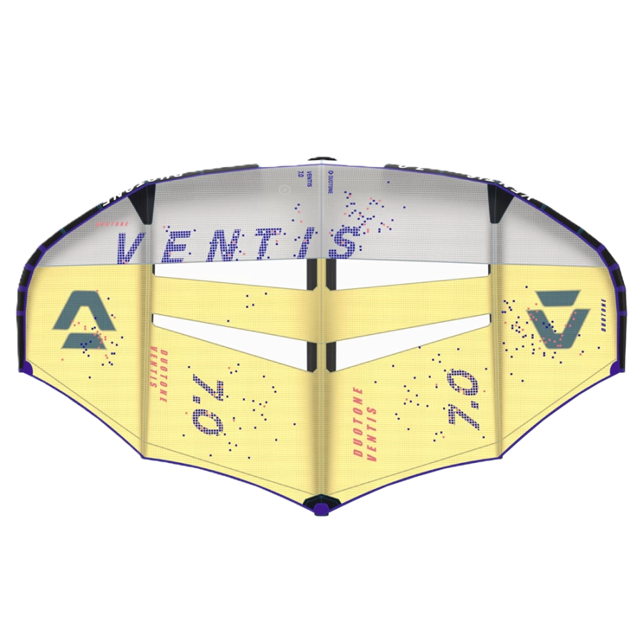 Die innovative 3-Strut Konstruktion und die einzigartigen Wing-Tips sorgen für maximalen Auftrieb, Power und Effizienz und ermöglichen es, mühelos und ohne intensives Pumpen auf das Foil zu kommen. Unser Designer Ken Winner hat beim neuen Ventis die Side-Struts weiter nach innen verlegt, was die Form- und Profilstabilität erhöht und das Gewicht und die Trägheit in den Tips verringert. Dadurch sind selbst die großen 7m2 und 8m2 Wings für alle Wing Foiler mühelos fahrbar – unabhängig von Körpergröße und Fahrkönnen.Der Ventis zeichnet sich durch ein 50 g leichtes Ripstop-Canopy aus, welches auch bei marginalen Bedingungen eine effiziente Leistung gewährleistet. Die auf Auftrieb und Stabilität ausgerichteten Side Struts sorgen für eine konstante Profiltiefe sowie Tuchspannung und gewährleisten somit eine gleichmäßige und stabile Kraftentfaltung. Die äußerst effektive Profilform und der Tip-Twist verbessern nicht nur die Leistung im unteren Windbereich, sondern sorgen zudem für deutlich mehr Druck auf Amwind-Kursen und ein ruhigeres Fahrverhalten in Böen. Das ergonomische Design der Mittel-Strut mit der verlängerten Front Handle aus Carbon ermöglichen einhändiges Fahren und bieten variable bequeme Griffpositionen für die Hände, wodurch Ermüdungserscheinungen reduziert werden und längere Sessions angenehmer sind. Der Ventis verwandelt Leichtwind Bedingungen in das perfekte Übungsfeld für deinen Fortschritt.