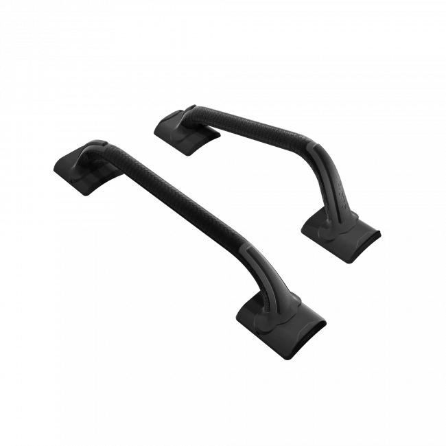 Die starren Griffe sind durch eine harte Basis mit dem Gurtband des Schirms verbunden und haben beide abgerundete Ecken, die einen ergonomischen Griff ermöglichen. Der vordere Griff ist so konstruiert, dass das Handgelenk immer in einem natürlichen Winkel bleibt, und ist auf einer Seite leicht erhöht, um alle Manöver zu erleichtern. Der hintere Griff befindet sich näher an der Stange und sorgt für Präzision und Kraft. Diese festen Griffe bestehen aus einem leichten Ovalrohr aus Glasfaser und einem EVA-Griff. Außerdem sind sie an allen Ecken mit EVA-Polstern versehen, um den Fahrer und die Ausrüstung vor Stößen zu schützen.