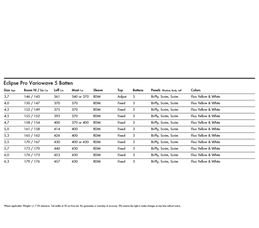 Marcilio Browne pushed for a 5 batten sail to deliver more stability with an additional batten aloft. The Eclipse Pro is a Variowave concept, with a huge range in mind, form light wind capability – due to its light build weight – to super strong storm conditions – due to its added control abilities.