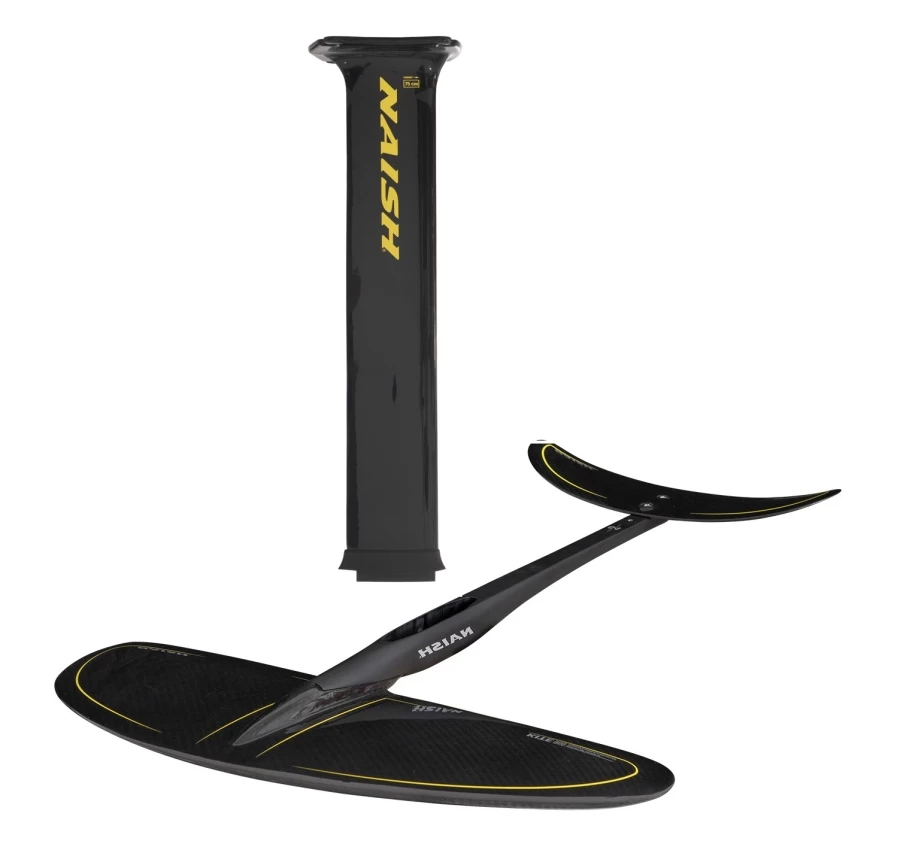 Das Set besteht aus den Artikeln Naish S26 Kite Foil Semi-Complete 960cm² (516.20180.000) und Naish Foil Mast Aluminium – 85cm (516.20240.010).