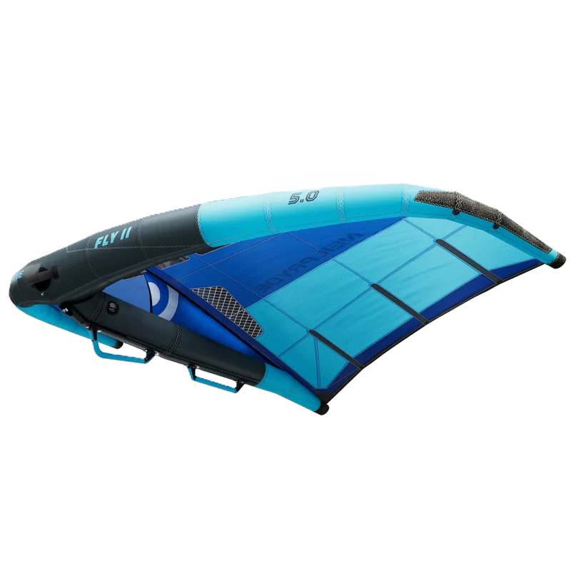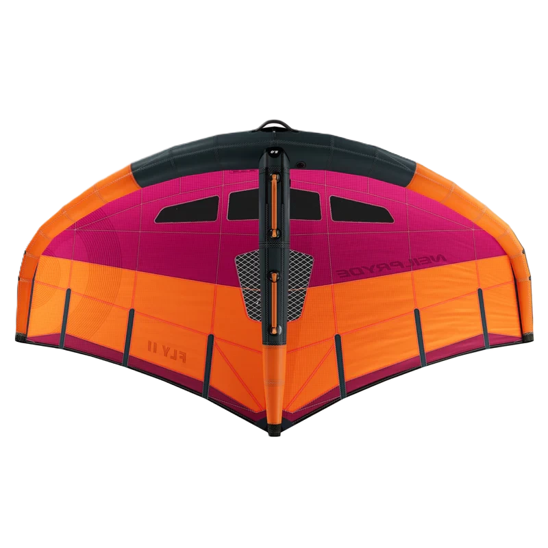 Unter Beibehaltung des einzigartigen Konzepts des hohen Auftriebskoeffizienten verfügt er über eine noch steifere Form und ein neues Verwindungsprofil, das das Handling und die Kontrolle bei starkem Wind erheblich verbessert. Die Spannungsverteilung der Kappe, die ursprünglich aus dem Windsurfing-Segeldesign abgeleitet wurde, wurde fein abgestimmt, um die Aufwindgeschwindigkeit und das Handling bei Aufwindmanövern zu verbessern. Das Dihedral-Frontprofil wurde neu geformt, um die Stabilität beim Einscheren zu erhöhen, was insbesondere für Fahrer mit einem Trapez von Vorteil ist. Zusätzliche Leading Edge (LE)-Segmente an den Flügelspitzen reduzieren nicht nur den Luftwiderstand, sondern sorgen auch für zusätzliche Steifigkeit, so dass der Wing höher zeigen kann. Die belüftete Strebe wurde mit einer zusätzlichen Versteifung an der Leading Edge (LE) in der Mitte aktualisiert, was die Stabilität im Bereich vor dem Füllpanel erhöht und den Wing viel fehlerverzeihender bei Tacks macht.