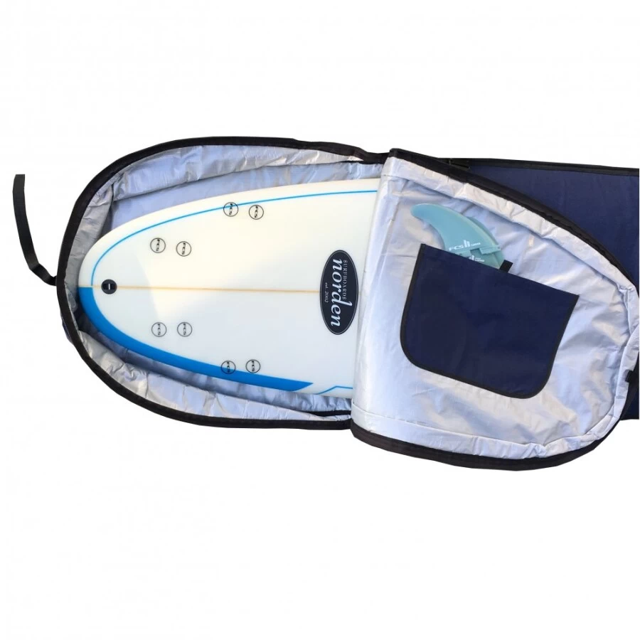 Alle unsere norden Air Travel Boardbags sind mit 10 mm Schaumpolsterung ausgestattet, und eignen sich perfekt für jede Art von Flugtransport – einfach Board rein und einchecken. Die Polsterungsstärke, sowie die extrem Widerstandsfähigen Materialien und deren Verarbeitung, garantieren den Sicheren Schutz des Boards, ohne das zusätzliche Verpackung notwendig ist. Das Bag ist jedoch kein „Sarg“, sondern bleibt kompakt genug, um es auch im alltäglichen Gebrauch, z.B. Autotransport, zu nutzen.